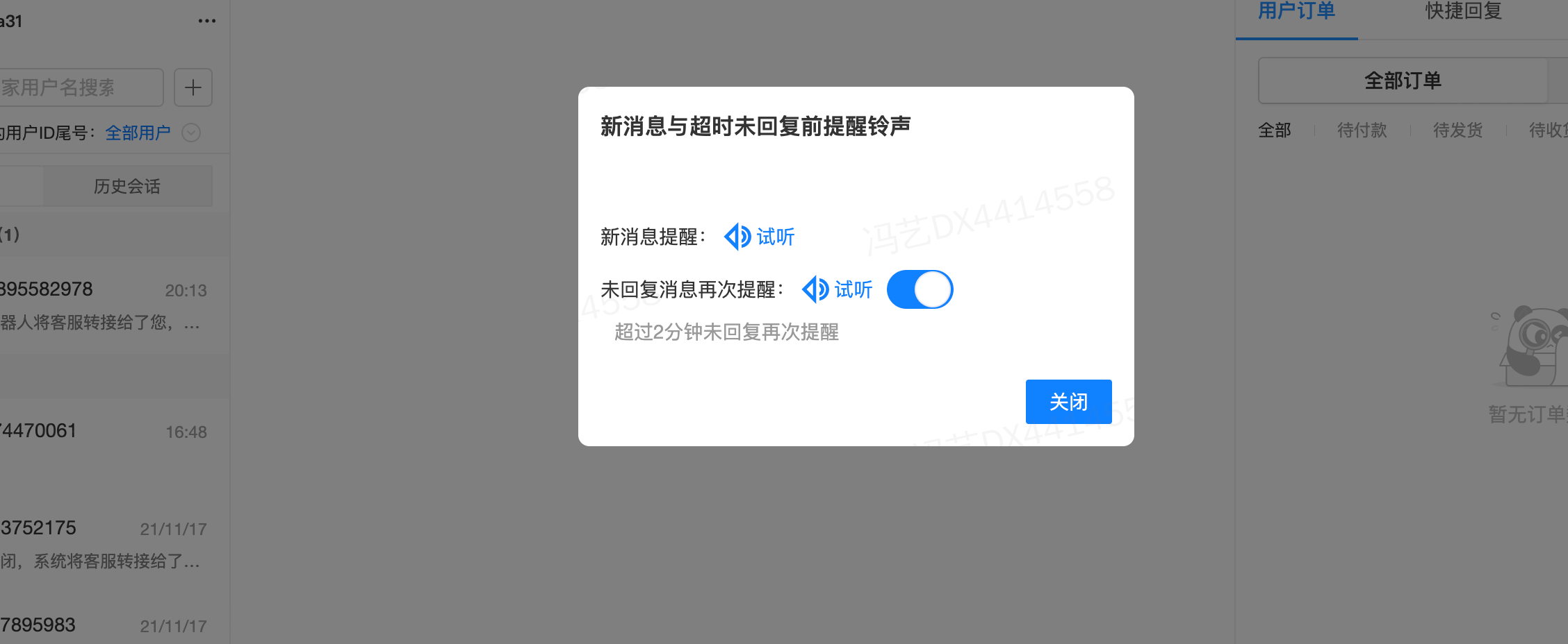 2、功能上线初期,默认针对广大商家开启“未回复消息语音播报”,客服坐席可根据需要开启或关闭该功能