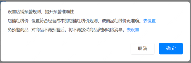 根据商家自行设置资损预警规则判断商品是否有资损(在4)中进行设置),展示低资损商品总数量。