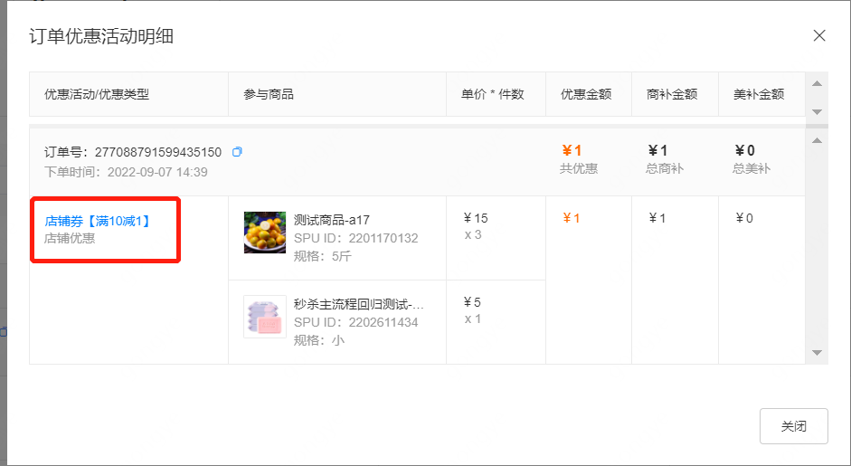可查看所用优惠的活动明细,如果是商家配置活动支持跳转查看活动具体信息;